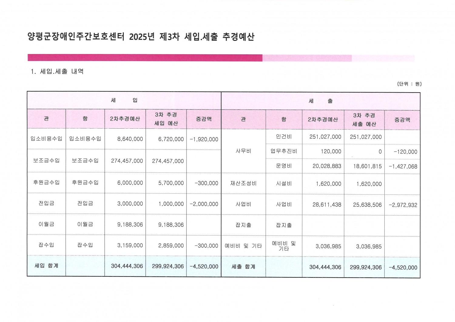 양평군장애인주간보호센터 2025년 제3차 세입세출 추경예산서 공고 페이지 정보 작성자 일반관리자 댓글 댓글 0건 조회Hit 53회 작성일Date 25-12-24 22:29 본문 양평군장애인주간보호센터 2025년 제3차 세입세출 추경예산서 공고 목록 이전글사회적협동조합 공정 2026년 세입세출 예산서 공고 25.12.24 다음글2025년 사회적협동조합 공정 제2차 추경예산 공고 25.12.24 댓글 0 댓글목록 등록된 댓글이 없습니다.